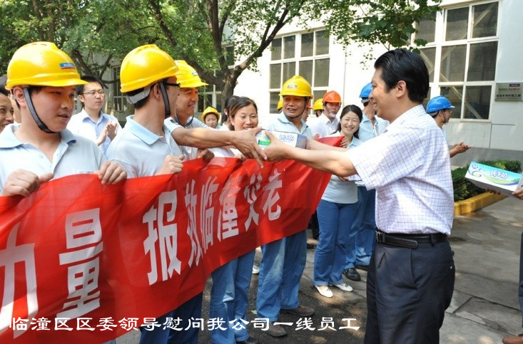 在集团公司向导的陪同下,,,,,,临潼戋戋委副书记、区长庞阿平,,,,,,人大主任金月梅,,,,,,区政协主席吴昌育,,,,,,区委副书记李晓明,,,,,,常务副区长刘三民等向导,,,,,,以及区内相关部分认真人一行,,,,,,来光临潼事情区探望慰问了生产一线员工,,,,,,并为他们送上清凉饮品。。。。。。员工们拉起横幅对区上向导来伟德官网慰问体现谢谢。。。。。。